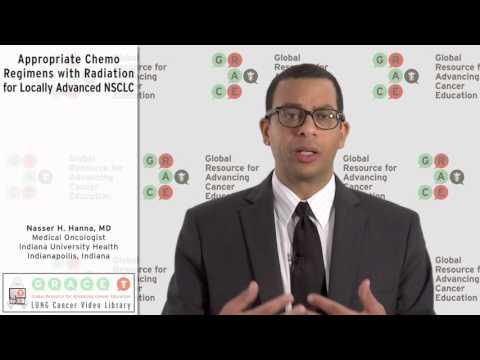 Dr. Nasser Hanna, Indiana University Health, lists chemo regiments appropriate for use with radiation in locally advanced NSCLC.